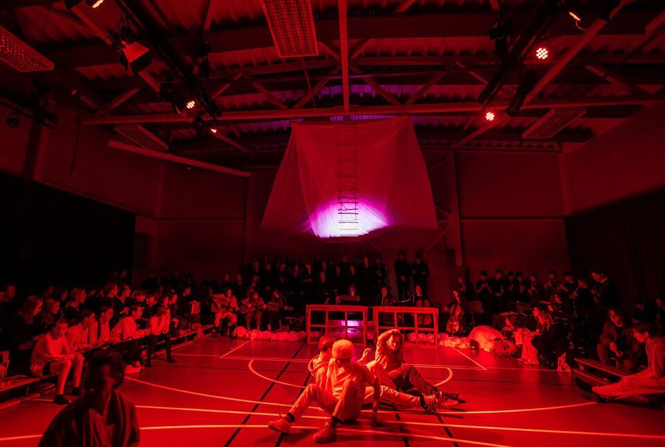 Įgyvendinta 2021. Sporto salės transformacija į daugiafunkcinę sporto ir renginių erdvę menus puoselėjančioje mokykloje. Suprojektuota bei integruota apšvietimo sistema, sukomplektuota įgarsinimo sistema. |