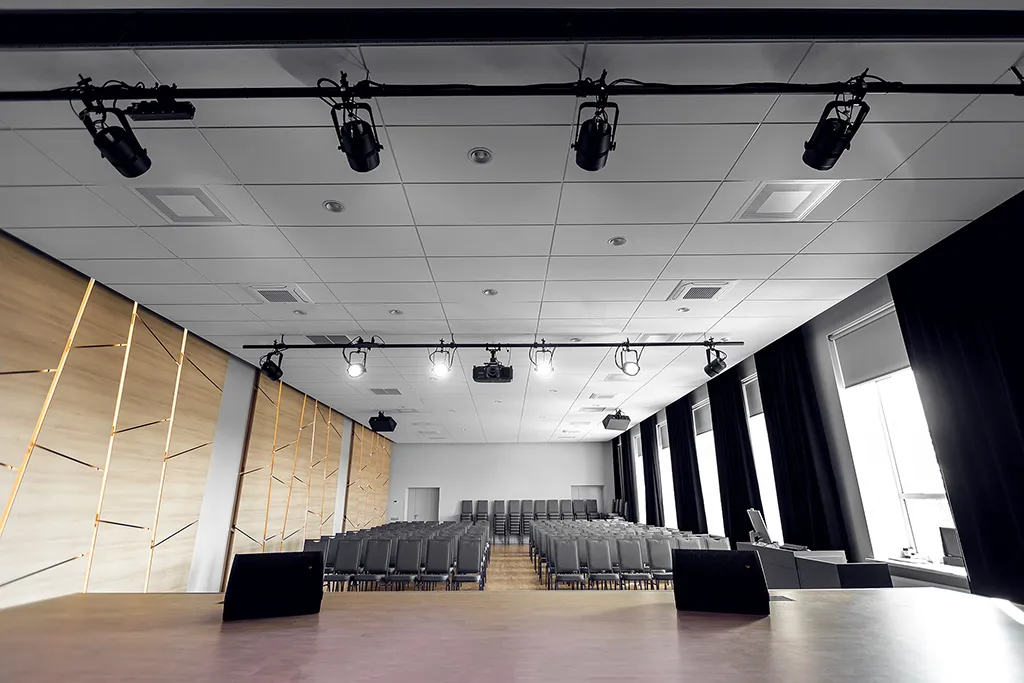 Įgyvendinta 2019. Suprojektuota bei integruota apšvietimo sistema. Integruota ypač patogi įrangos kabinimo sistema, leidžianti prijungti apšvietimo prietaisus bet kuriame kabinimo taške. Įvairios paskirties apšvietimo prietaisai leidžia įgyvendinti visus reikiamus apšvietimo scenarijus, nuo konferencinio iki koncertinio apšvietimo. |